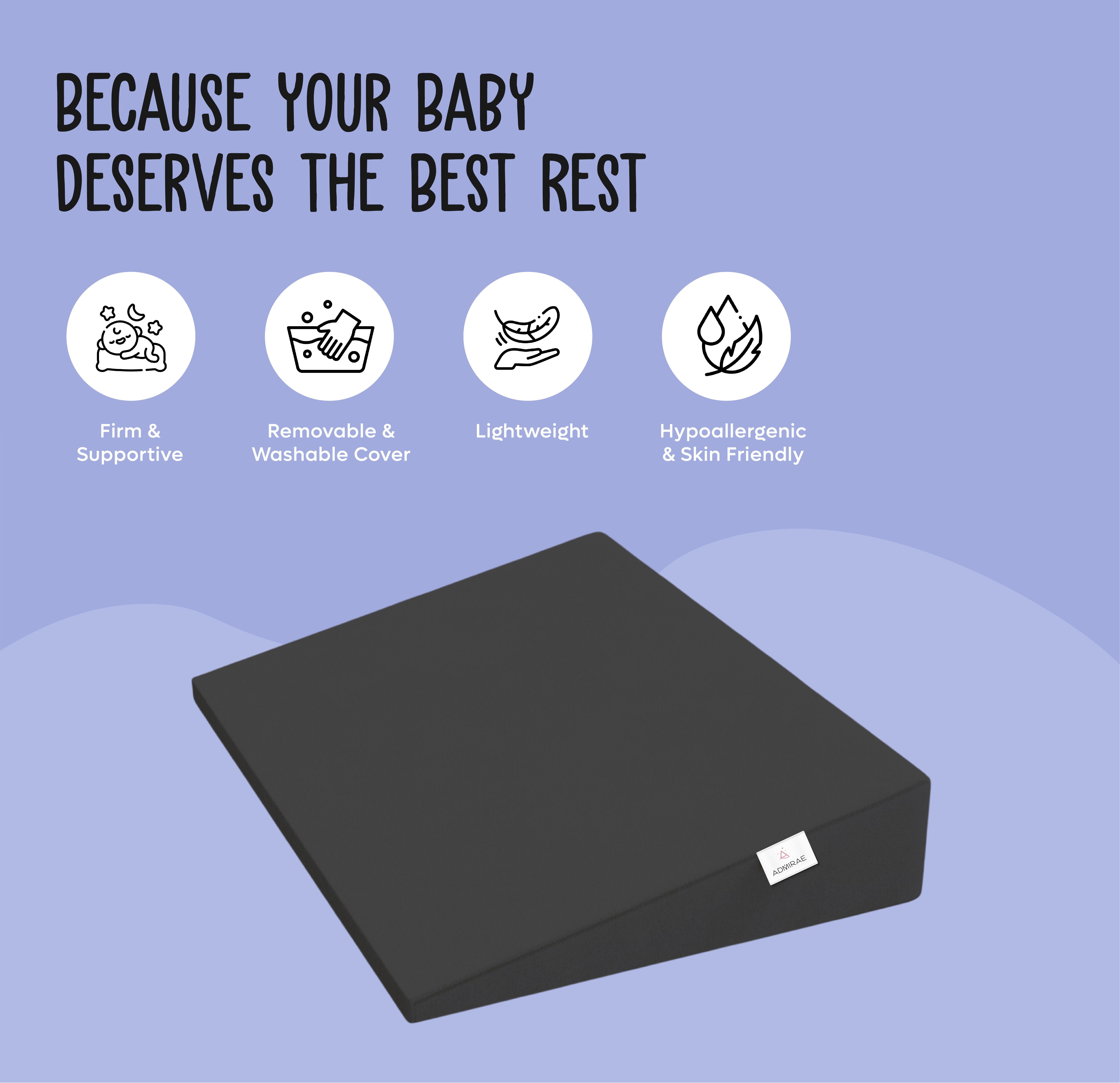 ADMIRAE Crib Wedge Pillow | Ergonomic Comfort | Gentle Support | Peaceful Sleep ADVANCED INCLINE DESIGN: Thoughtfully crafted to promote safer, more restful sleep by easing breathing and reducing nasal congestion. Lightweight and universally compatible with all cribs and cots.